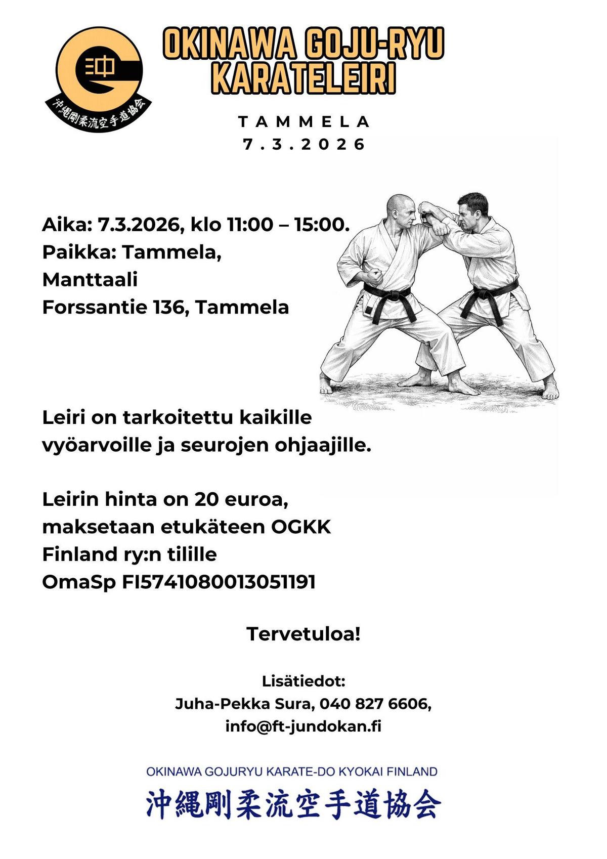 Leirin hinta on 20 euroa, maksetaan etukäteen OGKK Finland ry:n tilille.